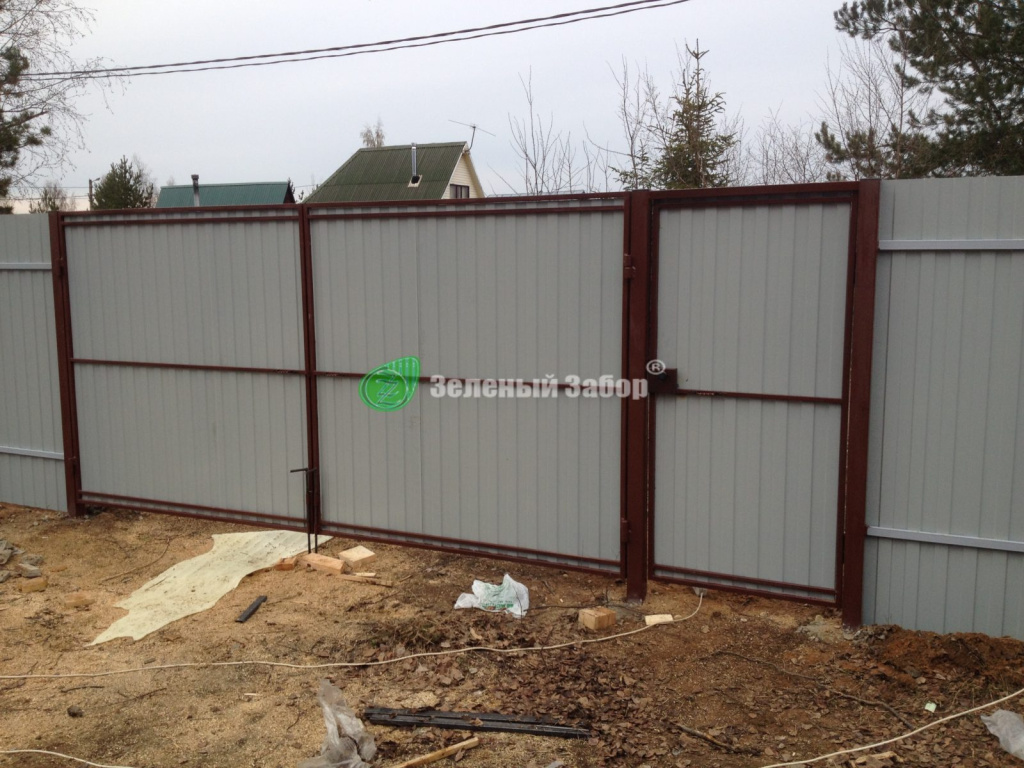 В пользу выбора забора из профнастила говорит и относительная простота его самостоятельного монтажа. Процесс не потребует использования специализированной техники и инструментов. Крепление больших по размеру листов осуществляется быстро. Трудности могут возникнуть при выборе, транспортировке материала, подготовке надежного основания, изготовлении удобных калитки и ворот. Отсутствие опыта способно привести к образованию царапин на профнастиле и другим мелким неприятностям.