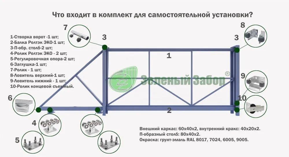 Комплект откатных ворот для самостоятельной установки. БЕЗ ФУНДАМЕНТА. Консультация по установке ворот в подарок!
