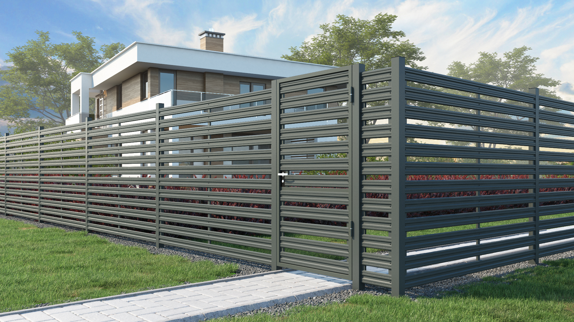 Эстетика: Горизонтальное расположение штакетника придает калитке современный вид и легко вписывается в любой ландшафт.