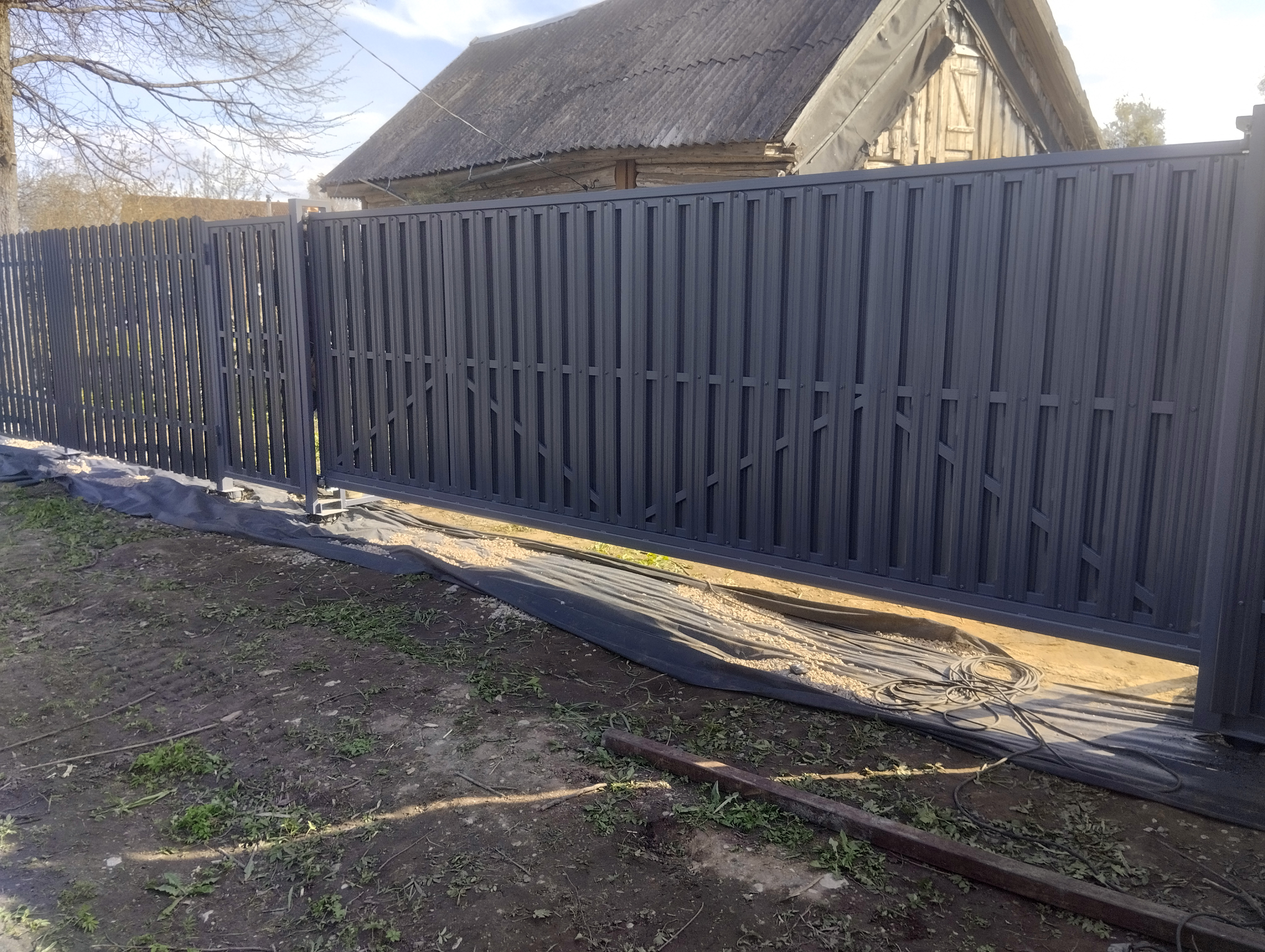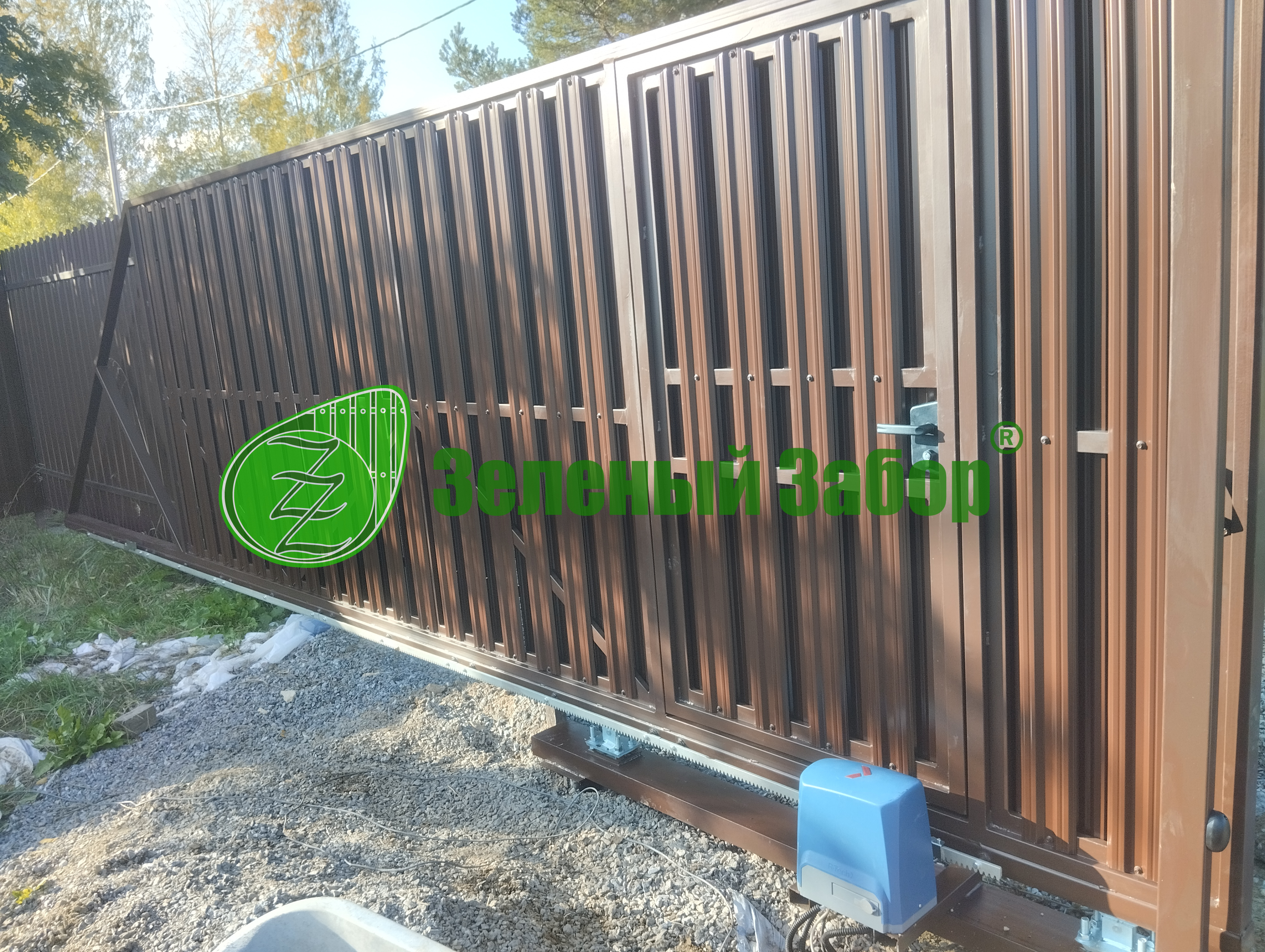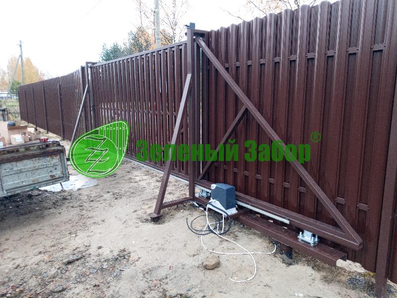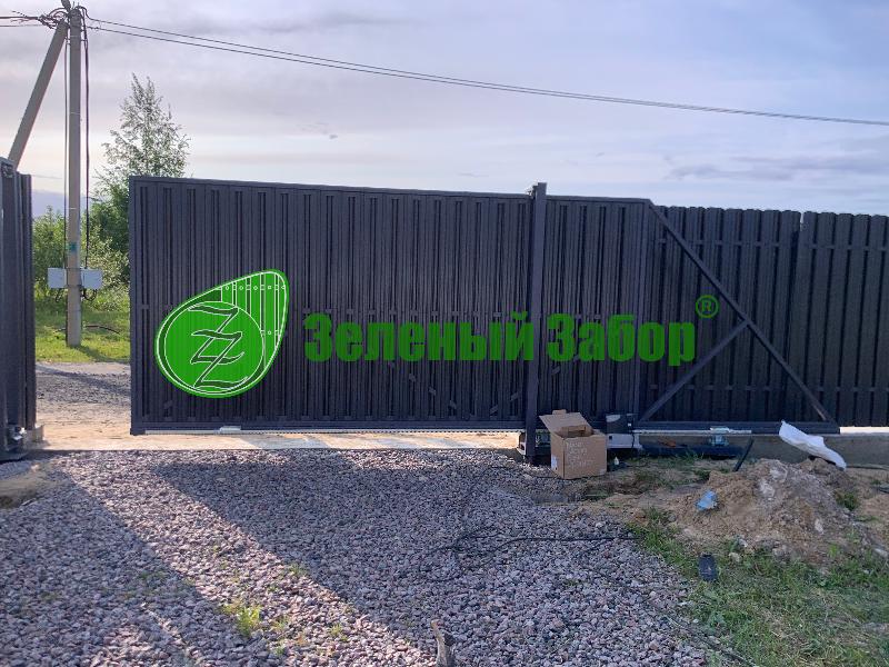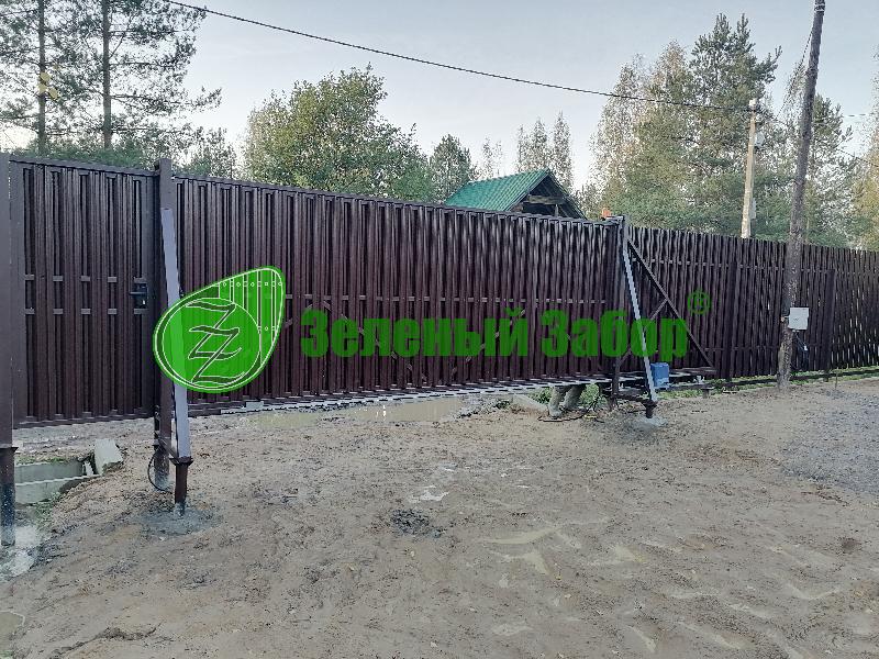 Уникальное решение для вашего участка: откатные ворота с электроприводом и стильной зашивкой евроштакетником!