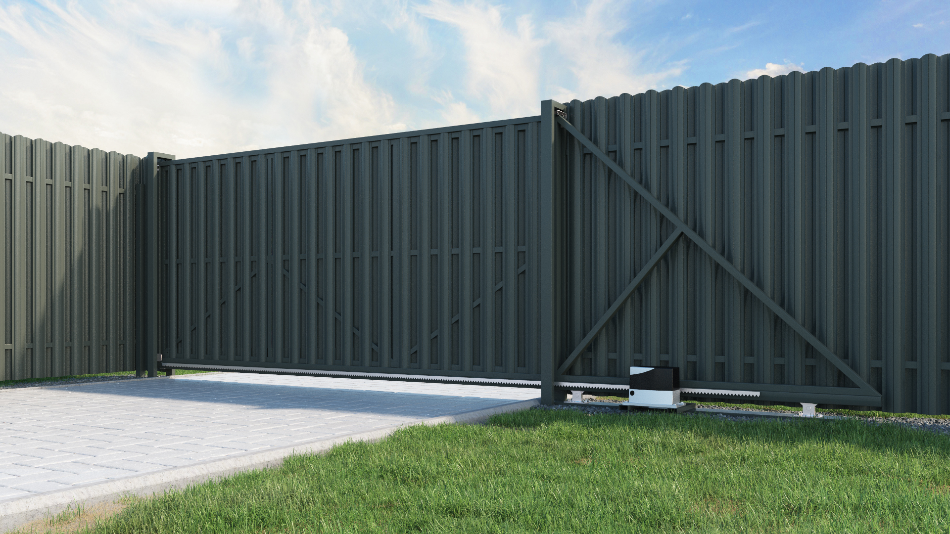 Откатные ворота на электрическом приводе представляют собой инновационную систему, которая позволяет автоматически открыть или закрыть доступ на вашу территорию. Система работает бесшумно и плавно благодаря качественным комплектующим и продуманной конструкции.